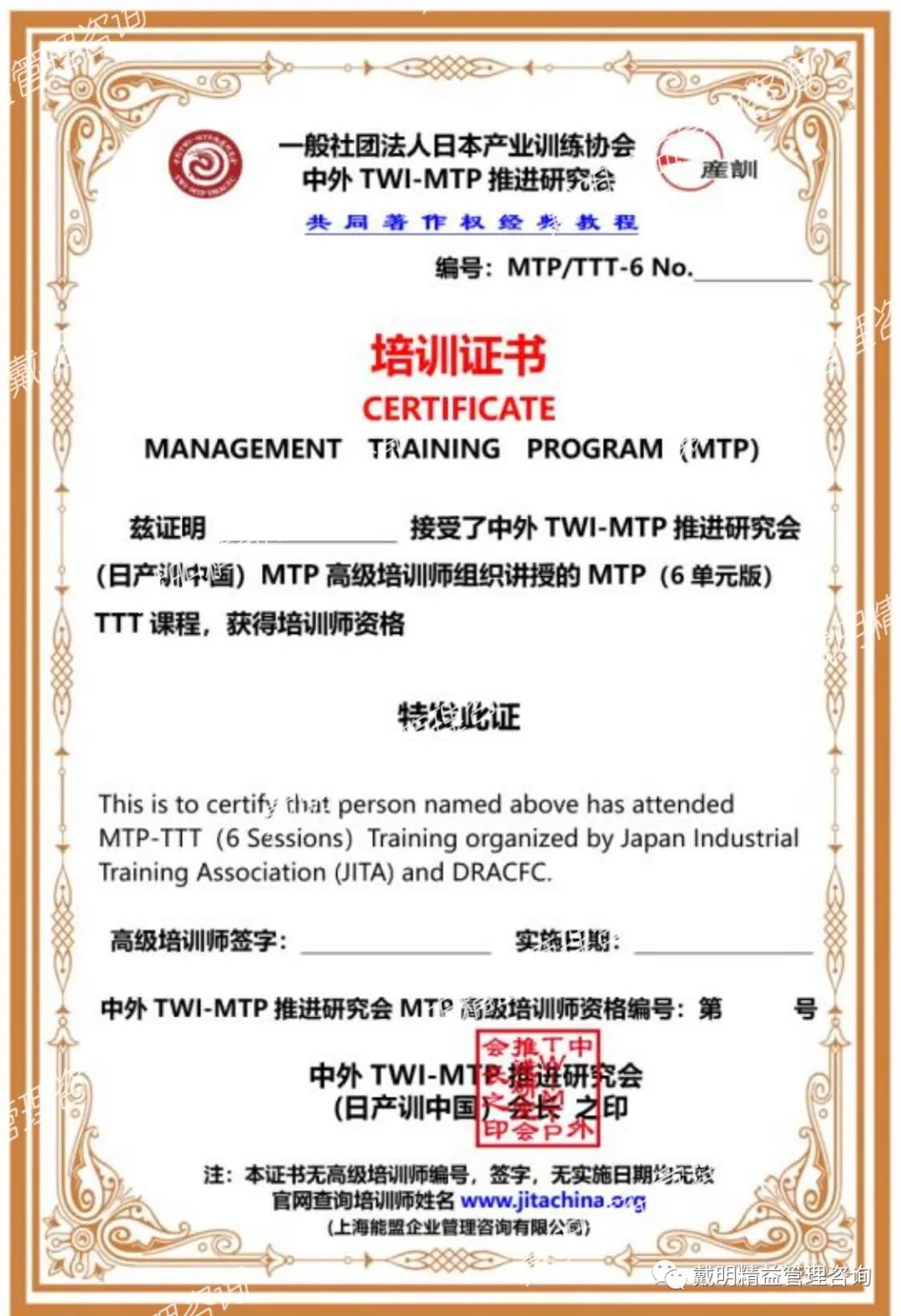 [1] 獲(huò)得中外TWI-MTP推進研究會(huì)講師認證證書